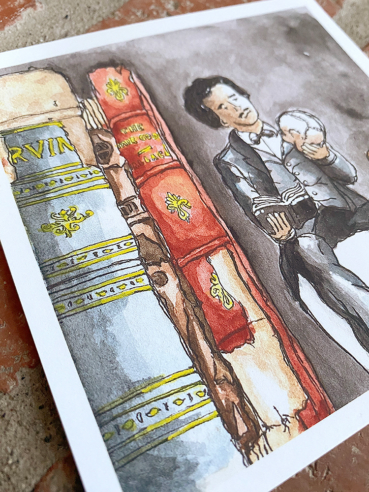 Fountain pen and ink with watercolors. Original created in November of 2024.